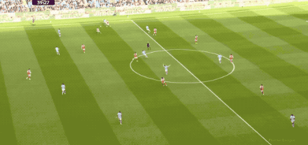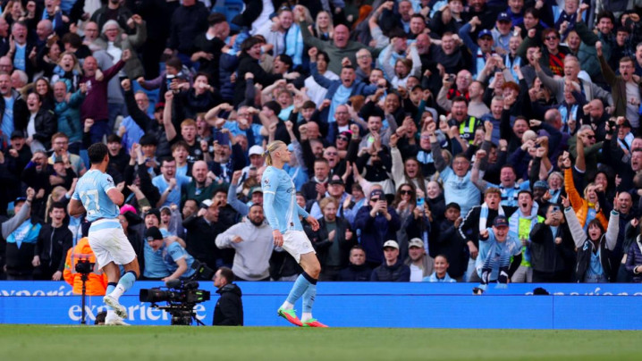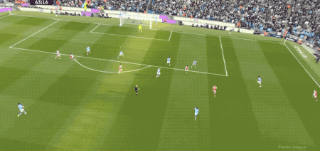 第66分钟,奥莱利插上传中,罗德里抢点没能碰到皮球,反而虚晃一枪,哈兰德抢点破门。