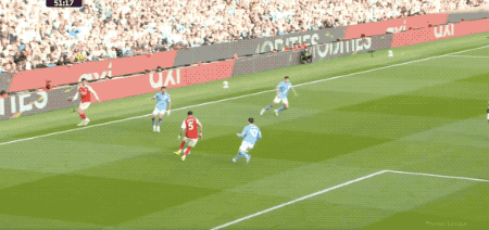 3分钟后,阿森纳的进攻制造威胁,哈弗茨的射门以及马丁内利的补射,都被曼城防线拦截。